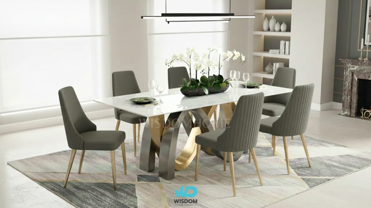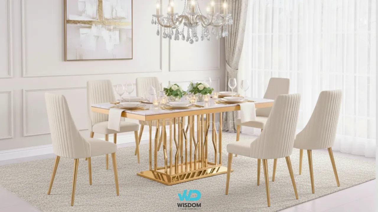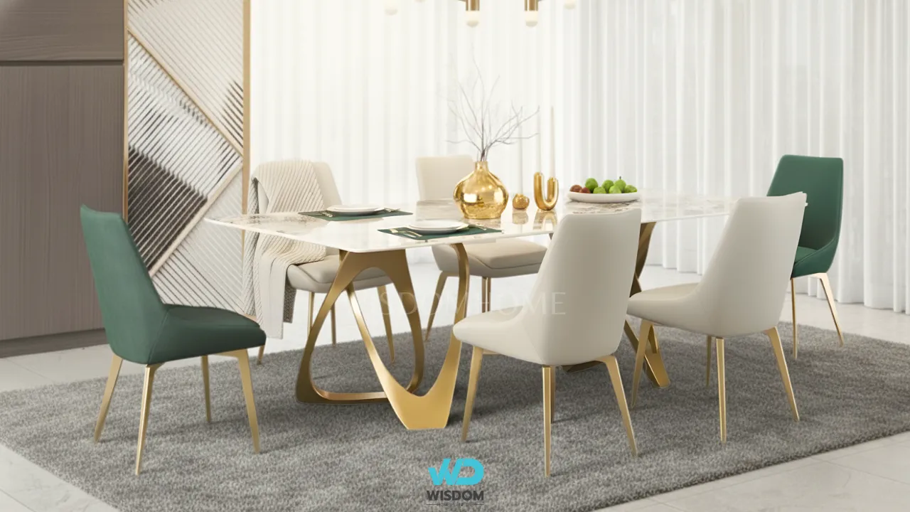 Wisdom Home Furniture เรามีโต๊ะทานอาหารและเก้าอี้สไตล์หรูหราสีทองหรูหราหลากหลายดีไซน์ให้คุณเลือกได้ตามความชอบ ทั้งขนาด โครงขา และหน้าท็อปเพื่อให้เข้ากับบรรยากาศและโทนสีภายในของบ้านคุณ