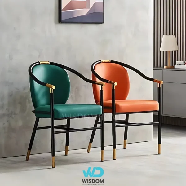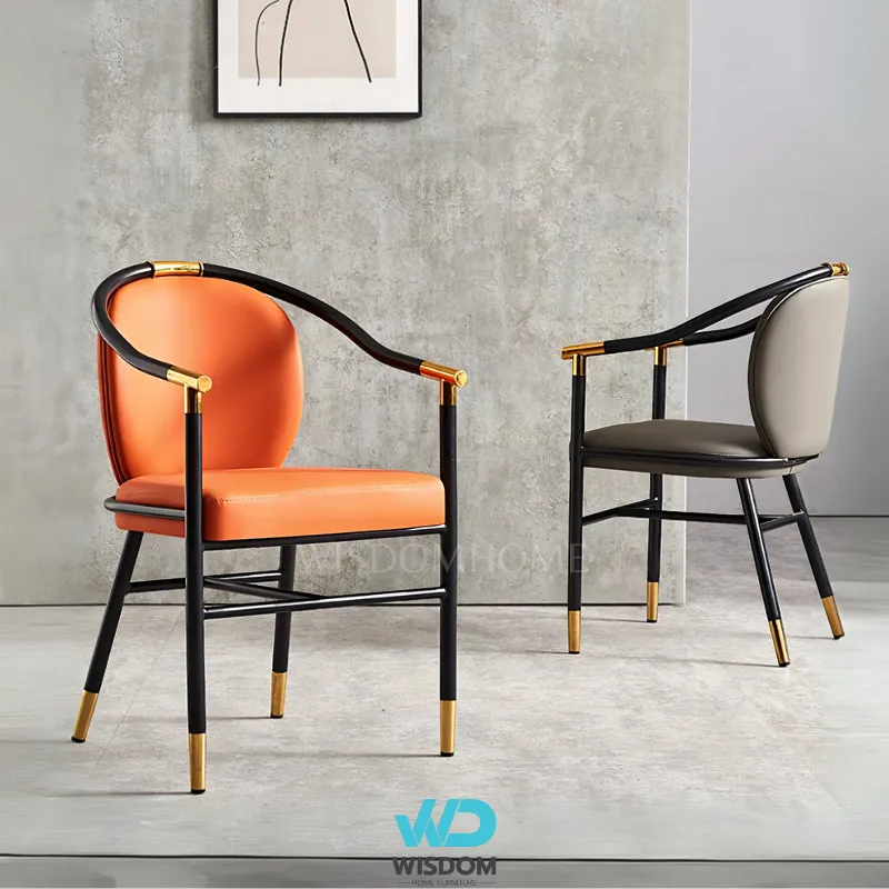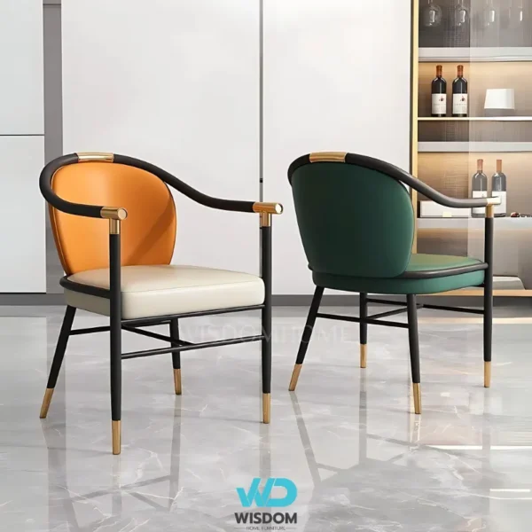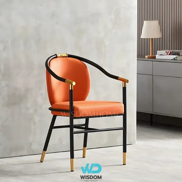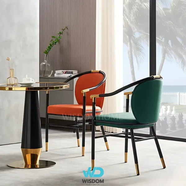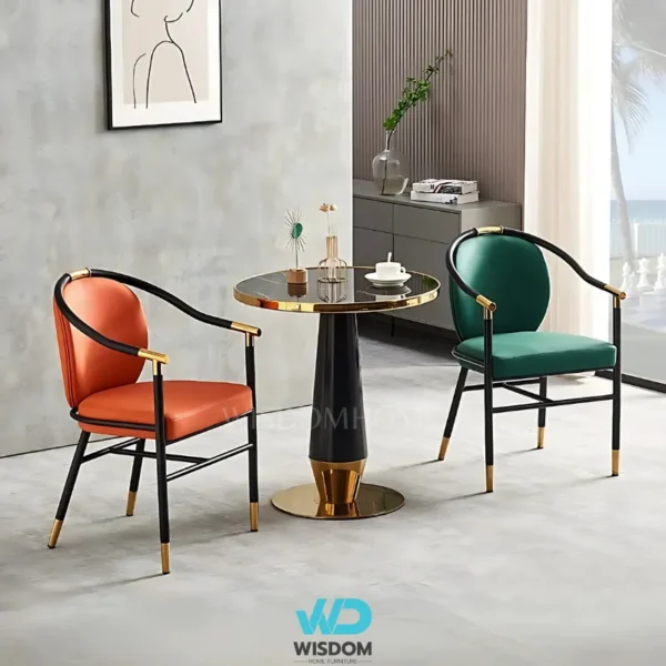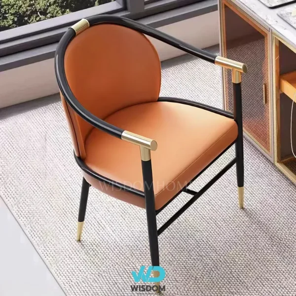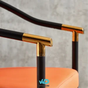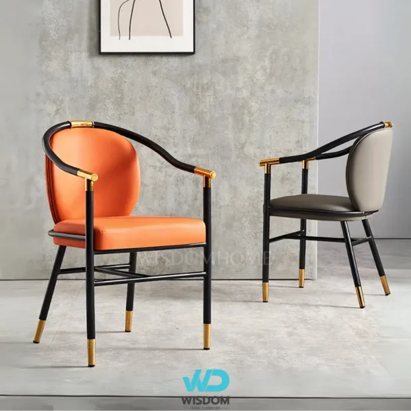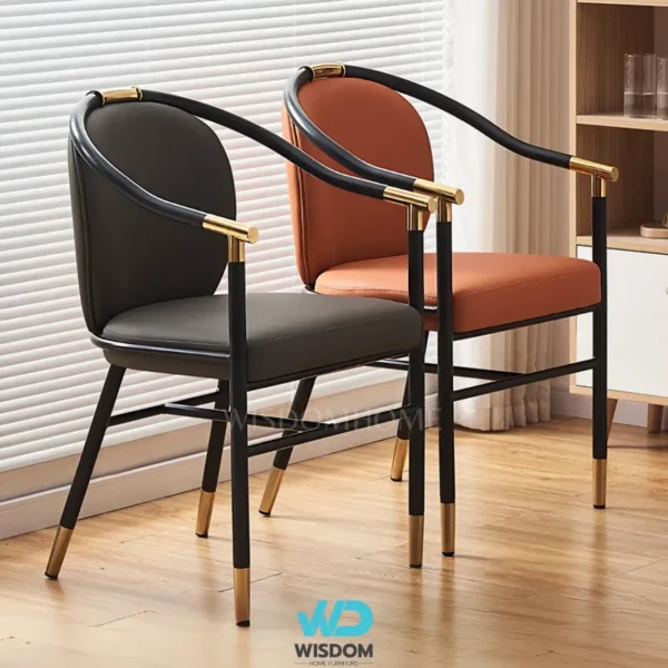 - เก้าอี้ทานอาหารสไตล์โมเดิร์น โครงขาเหล็กคาร์บอน สีดำ (ตัดขอบ และหุ้มปลายขาด้วยสแตนเลสสีทอง)